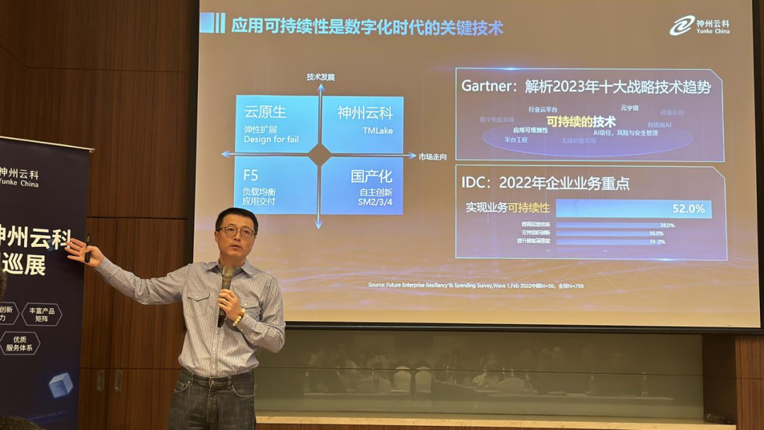 3 月 7 日,“聚势共进,和合共赢”——神州云科数字化生态全国巡展正式在西安拉开序幕。此次巡展,神州云科站在应用可持续性的战略高度,通过双轨超高可用架构(DTMAA)帮助企业更好地应对数字经济时代对应用交付和网络安全的高要求,满足客户在双轨 (信创&非信创)环境中,实现基于双活或多云多活的应用可持续性,与生态合作伙伴共同探讨数字经济时代下的新挑战,新机遇。