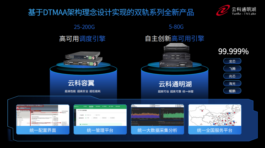 同时,为了更好的适配双轨超高可用架构,神州云科推出了容翼系列和云科通明湖信创系列两大应用交付控制器产品。
