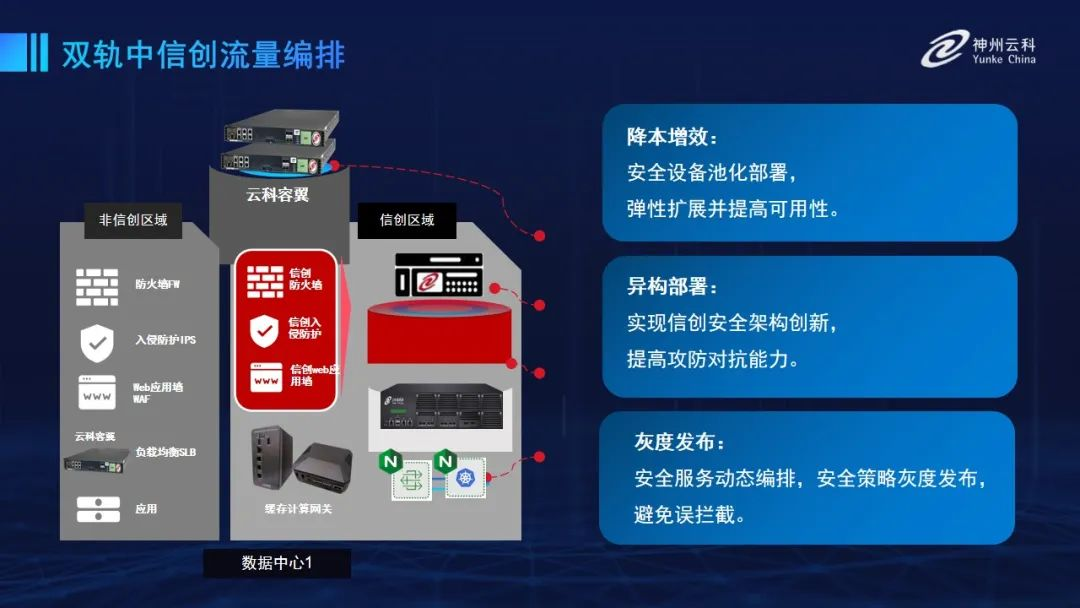 神州云科安全流量解决方案通过把安全产品池化和旁挂部署,使安全架构变得简单清晰,进而实现安全设备池化部署,弹性扩展并提高可用性,提高攻防对抗能力,实现了安全服务动态编排,安全策略灰度发布,避免误拦截。